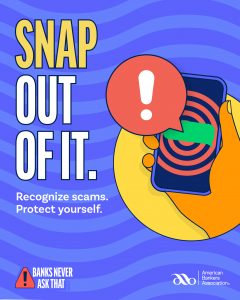 At Chelsea Groton Bank, we’re committed to helping you spot scams. We’ve joined the American Bankers Association and banks across the country in a nationwide effort to help you realize when you’re under a scammer’s trance and snap out of it, so you avoid losing your money.