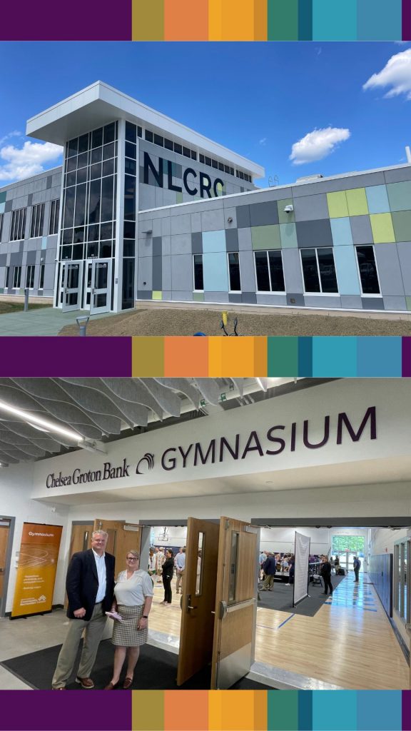 In addition to the Chelsea Groton Bank Gymnasium, the 57,000-square-foot facility also features a fitness center, eight-lane pool, full kitchen, locker rooms, mother’s rooms, childcare rooms, community spaces, recreational programming, and more.